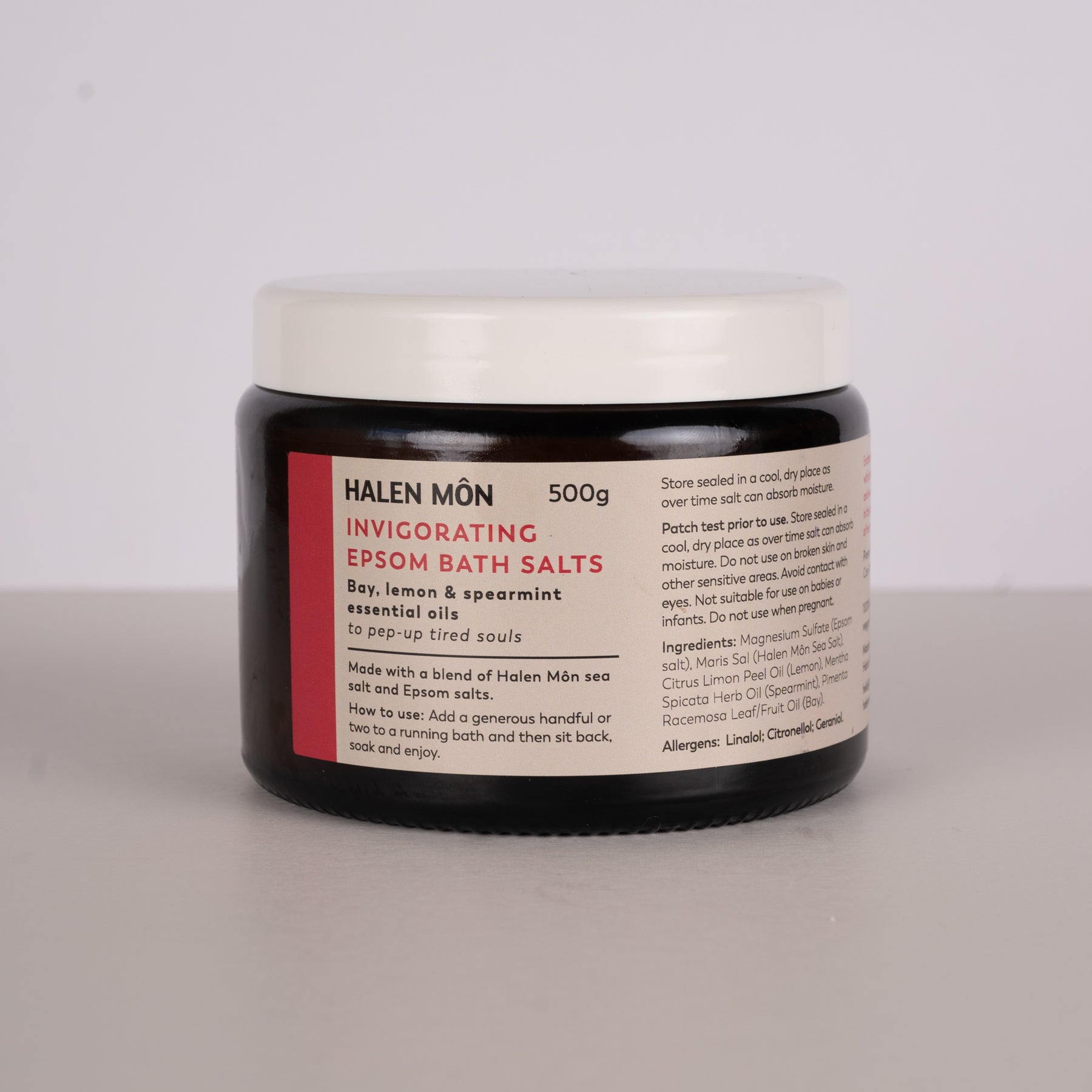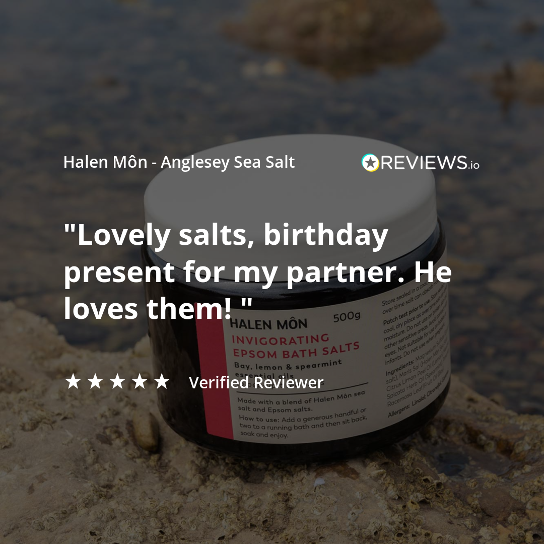 Epsom Salts (Magnesium Sulfate) – Naturally derived bath salts that create a mineral‑rich base for a comforting soak that will help skin feel smooth. Halen Môn Pure Sea Salt – Hand‑harvested sea salt with trace minerals, lending a naturally textured salt base that enhances the bathing experience. Lemon Oil – Infuses the salts with a fresh, uplifting aroma to brighten the senses. Spearmint Oil – Adds a cool, refreshing scent that complements the blend with a crisp, invigorating note. Bay Oil – Brings a subtle, warm botanical fragrance to the salts for a refined aroma.