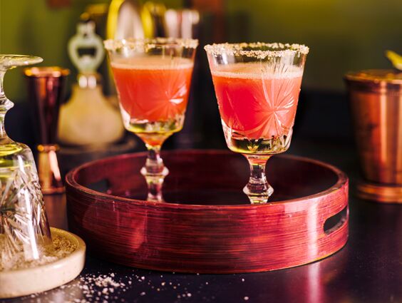 Glittering glasses of cheer for the festive season. From frozen blood orange margaritas and a perfectly smoky negroni to a no-alcohol shrub with plenty of character so nobody feels like they’re missing out. Serve with a salty snack.