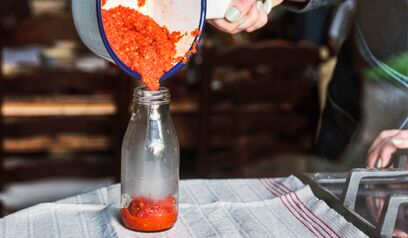 This is a killer hot sauce, if we do say so ourselves and we think it makes a killer handmade gift too. Poured into your cutest glass jars or bottles it’s perfect for the more adventurous among us. The hot sauce needs to ferment at room temperature for 1–2 weeks before it’s ready to eat so make sure you give yourself plenty of time.