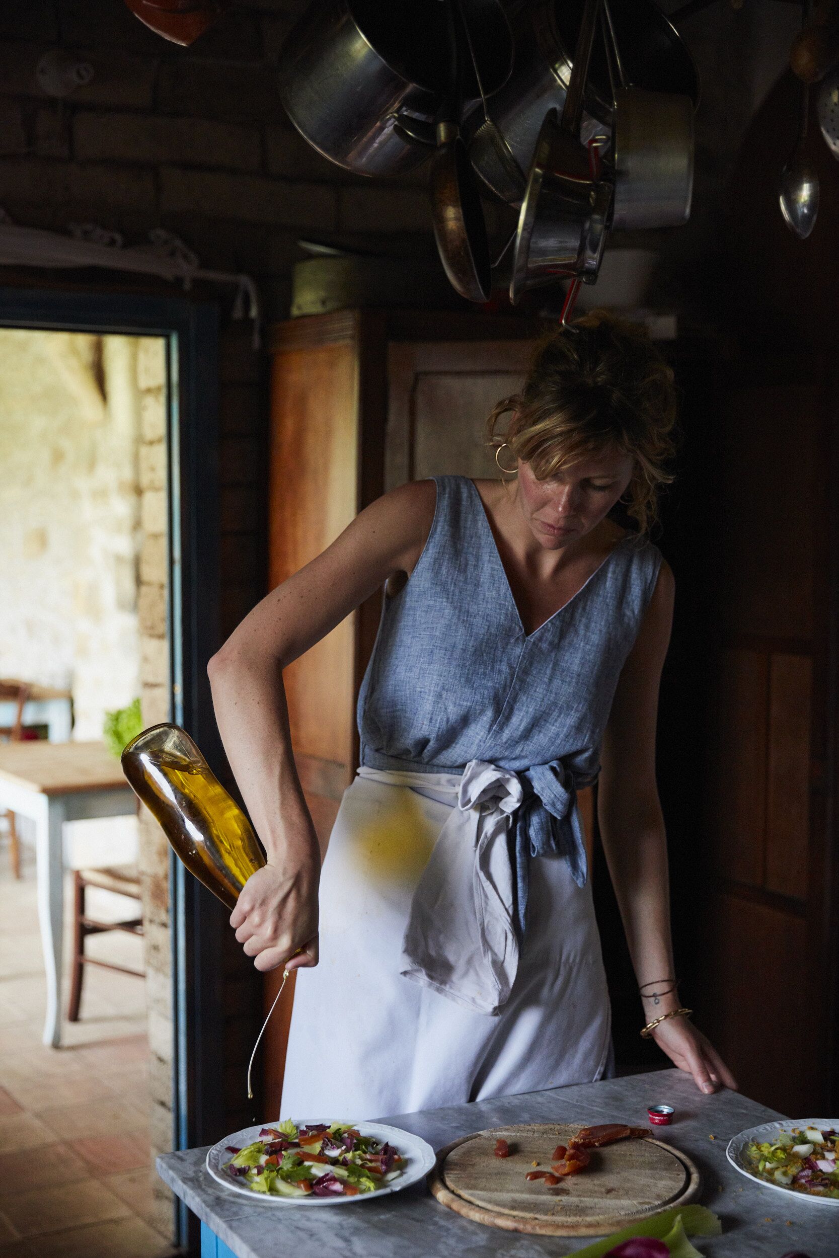 I wrote it at home in Sardinia, but we shot it in the most beautiful location. It’s an old shepherd’s property in the North West of Sardinia, owned by two French designers, who have the most beautiful eye. I have never seen so many beautiful ceramics. Laura, who owns the house, has things from all over, Morocco, Portugal, Sicily. She also has small kids so there was a room for my son who came on the shoot with us. It was a perfect location, and the sun shone nearly all the time. We were very lucky. Charlotte is a magician with natural light.
