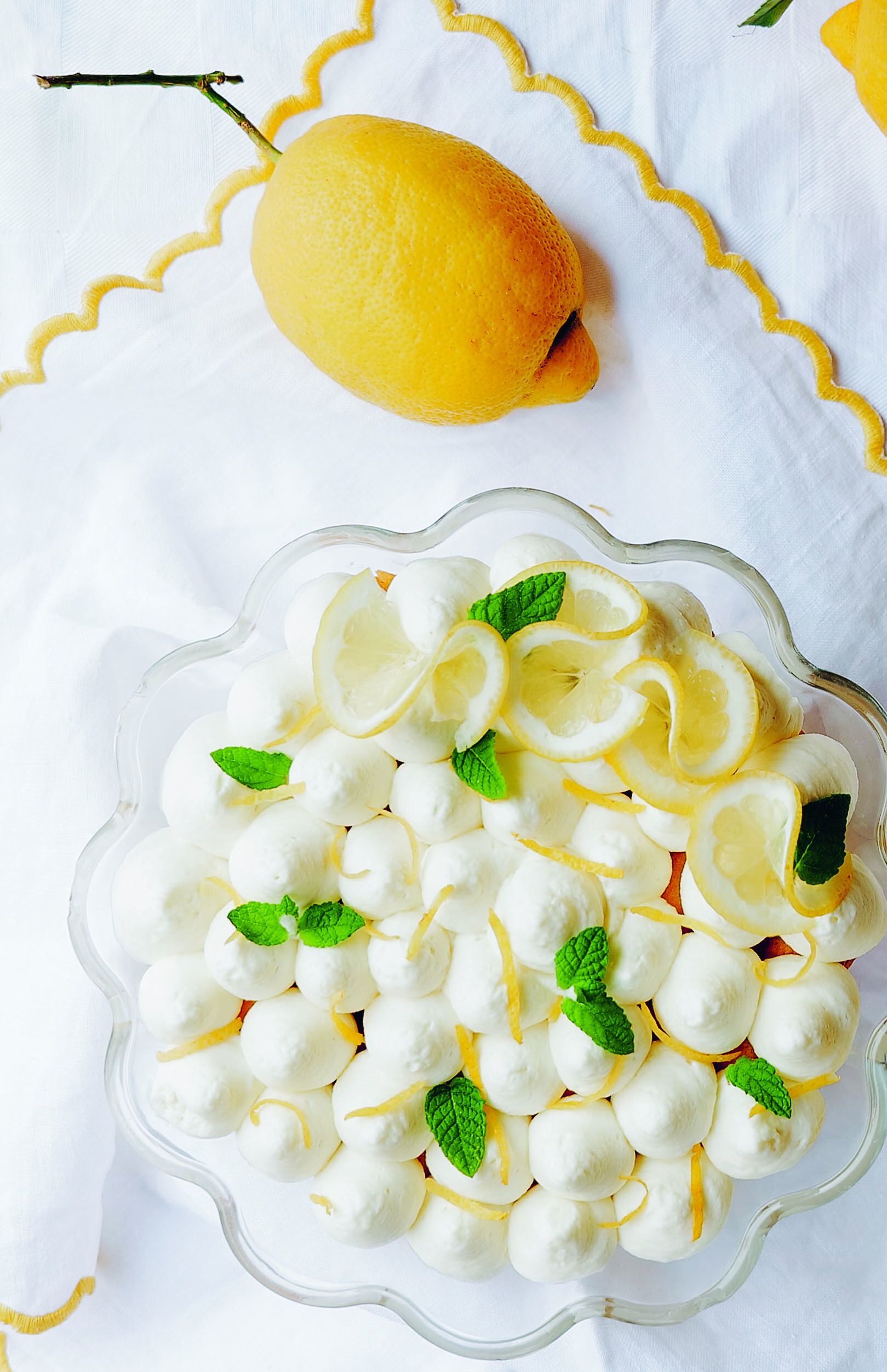 From Letitia: ‘I may have resisted the temptation to call this ‘lemonisu’ (partly because it doesn’t sound right anyway) but I could not resist writing a recipe for a pale yellow, lemony tiramisù. Of course, a real tiramisù should have coffee and cocoa (and in my mind, marsala and brandy), but this is a truly heavenly (if heathen) version, which, quite apart from being delicious, has a strong aesthetic argument behind it; such swathes of lemon yellow and pale cream seem like some sort of divinely luxurious sofa, smug and snug in the corner of an idyllic Amalfi residence.