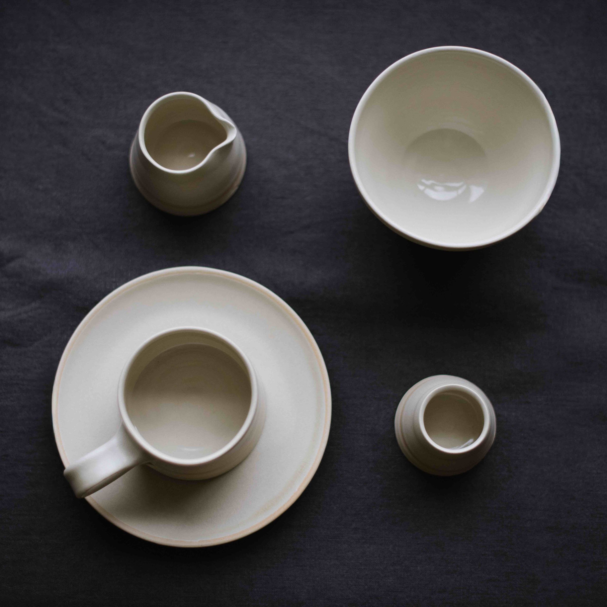 A hand-thrown ceramic side plate, featuring Jess Lea-Wilson's dove illustrations debossed on the bottom, as well as maker's marks. A neutral, white glaze that really lets the clay sing.