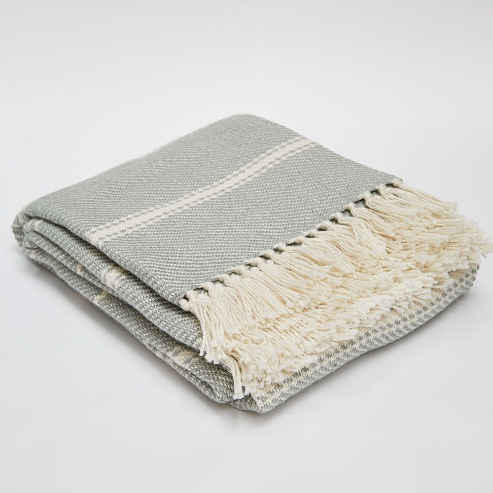 This grey Oxford stripe blanket is made by Weaver Green entirely from approx. 300 recycled plastic bottles. It is as cosy as wool, stain resistant and washable.