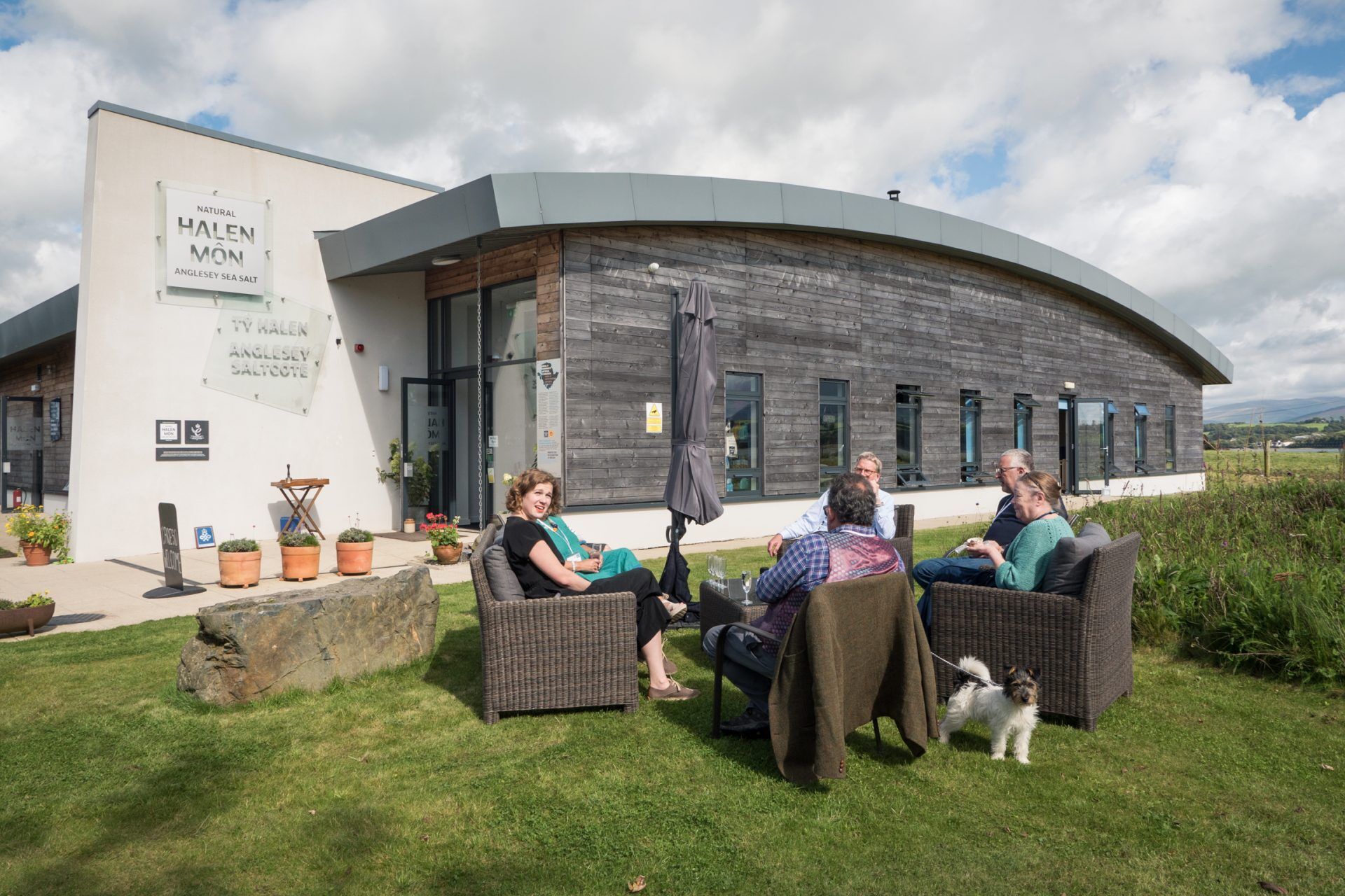 On-site we simply re-use things where we can – making signs out of old equipment and using a cheerful old telephone box to grow chilli and tomato plants. Last year we planted a wildflower meadow in front of our Saltcote to encourage wildlife, and we use our own solar energy that we generate on site everyday.